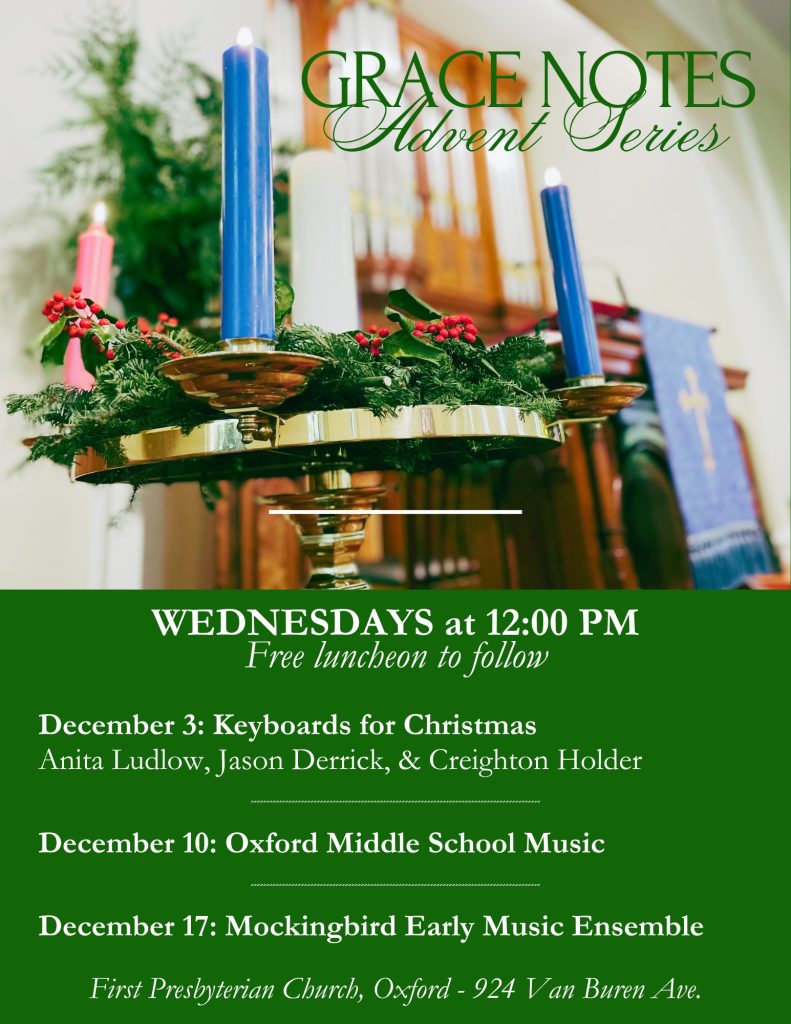 First Presbyterian Church regularly hosts guest artists through our Music at First Concert Series. These seasonal performances are free to the public and take place all throughout the church year. Music at First aims to offer diverse and exceptional music programming with a broad array of repertoire. We encourage collaborations and creativity when planning events and welcome intergenerational involvement from ministries across the church.